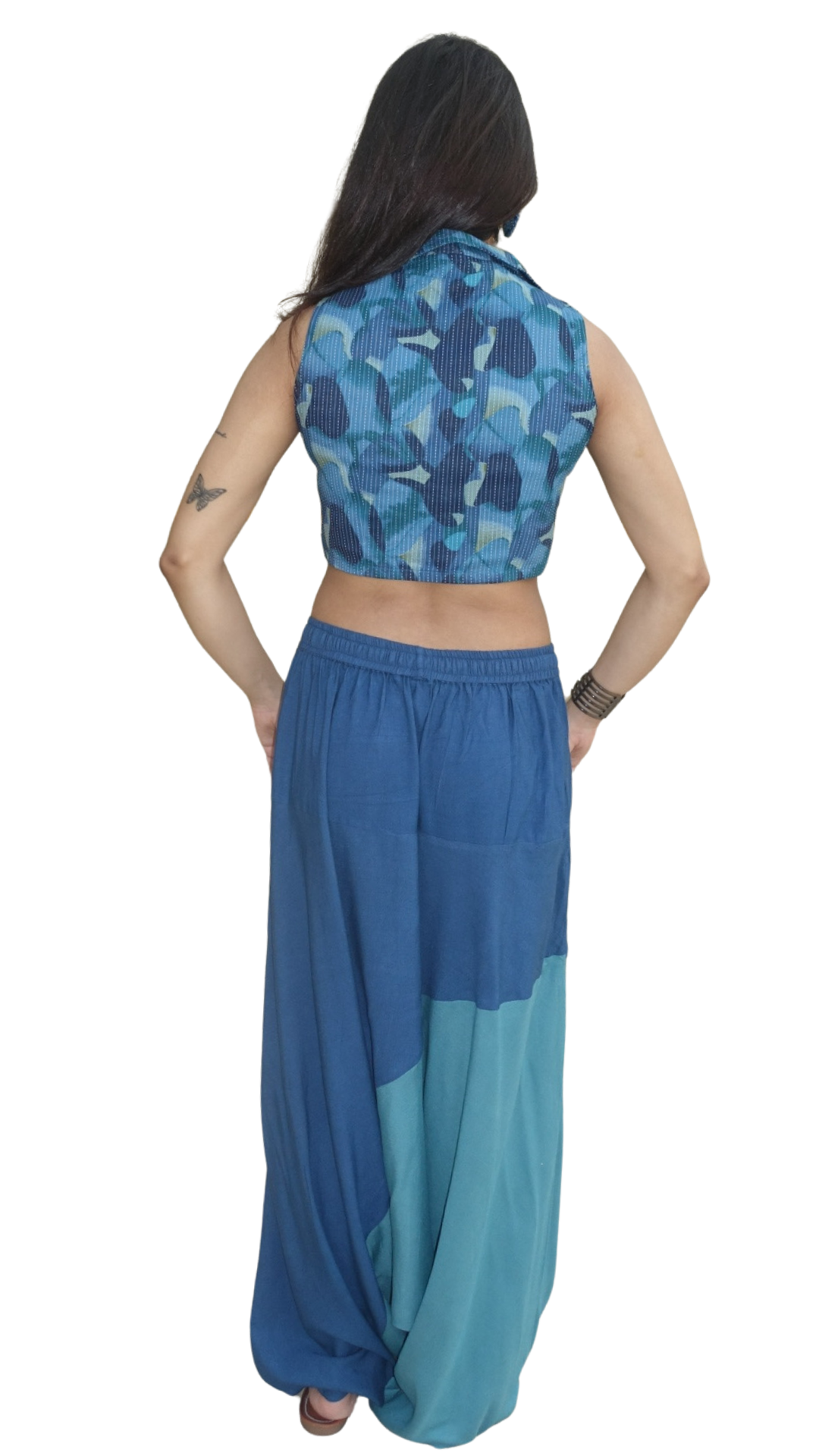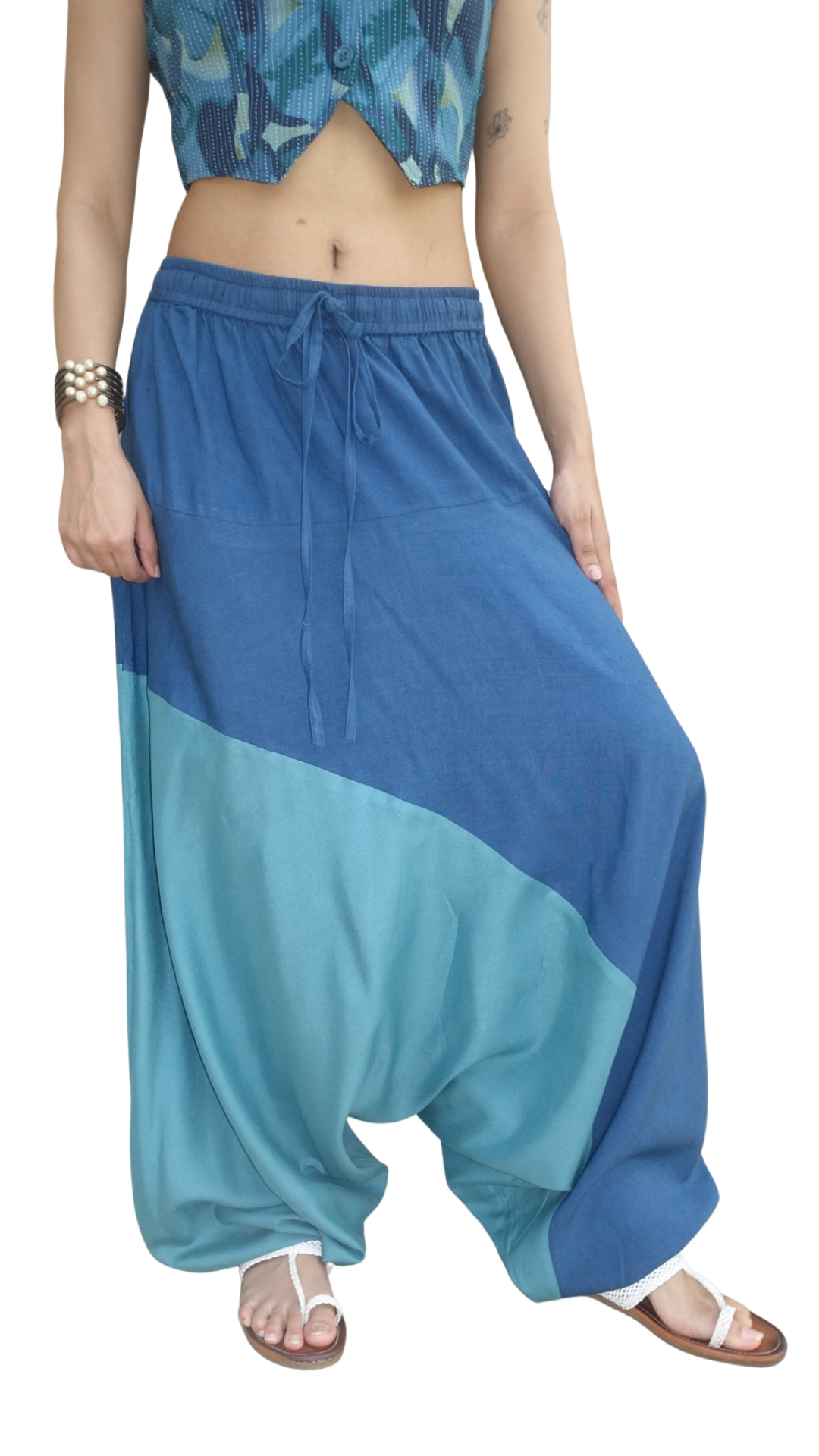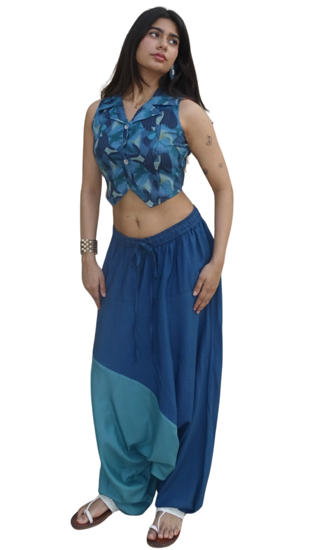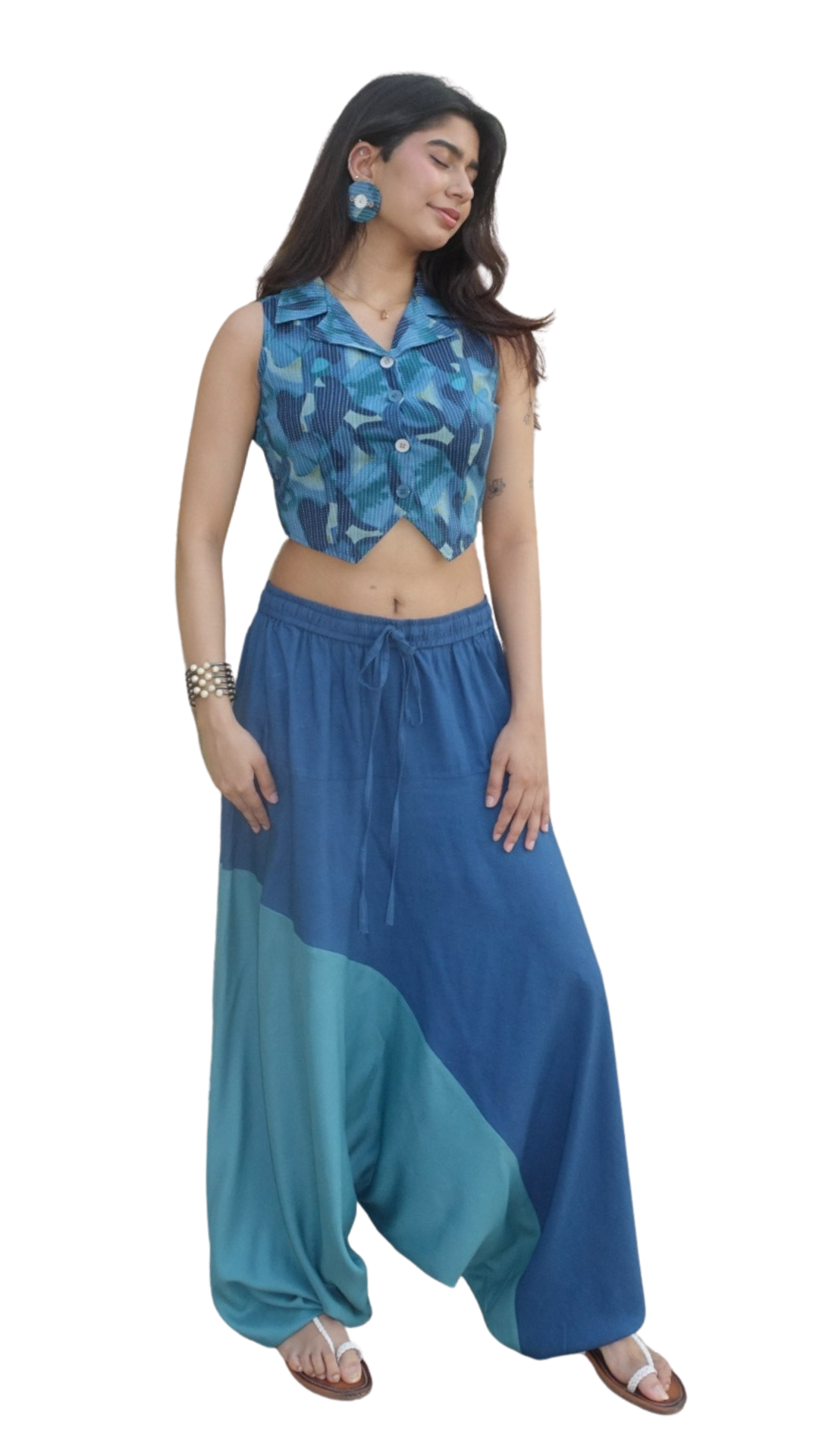 Step into effortless style with VIKROTI our free-spirited boho pants designed for comfort and versatility. Made with a unique mix of two fabrics, these pants create a striking look that blends flowy ease with chic detail.