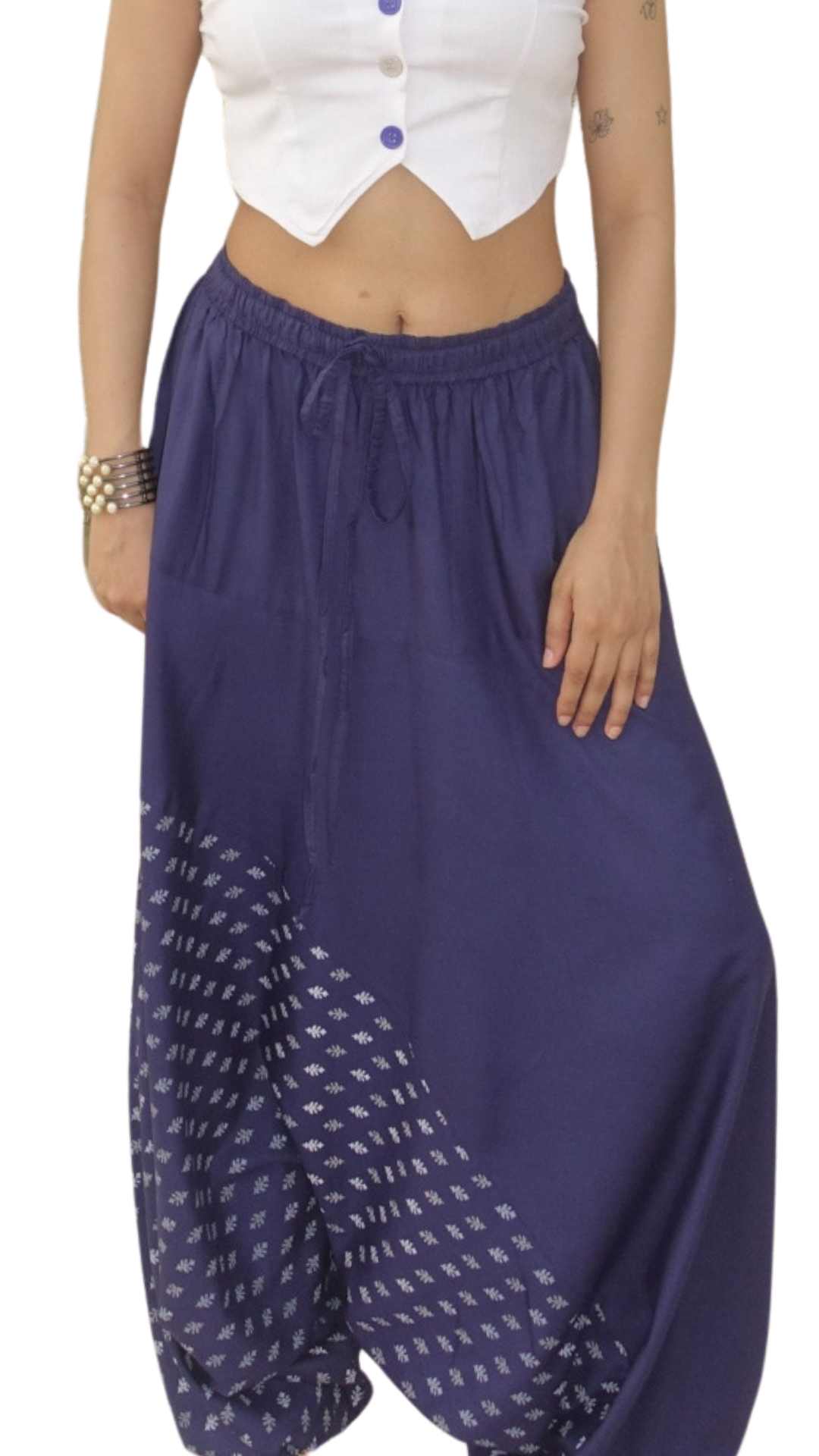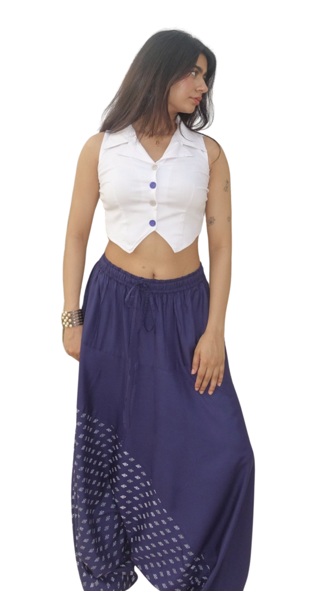 Step into effortless style with VIKROTI our free-spirited boho pants designed for comfort and versatility. Made with a unique mix of two fabrics, these pants create a striking look that blends flowy ease with chic detail.