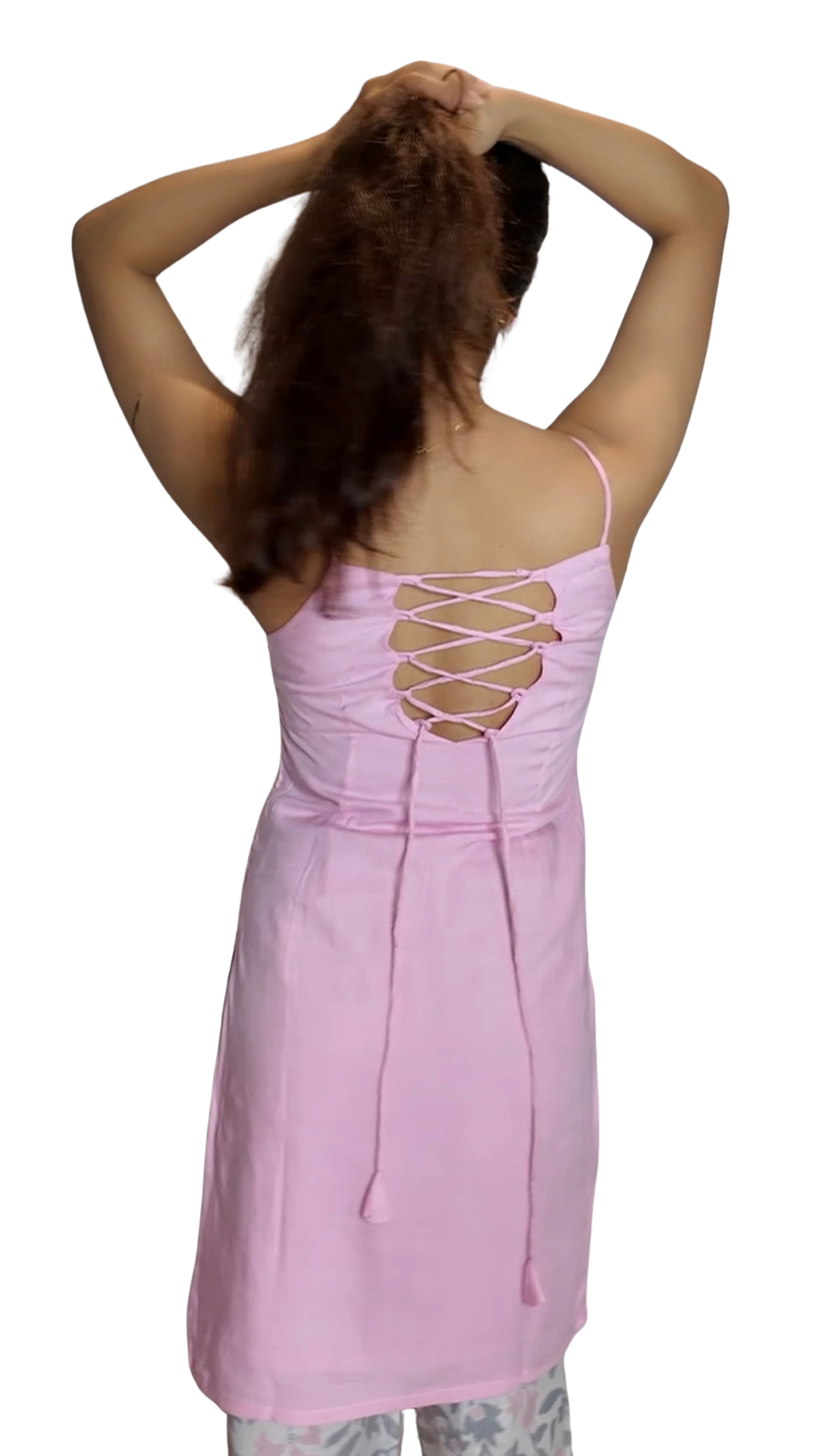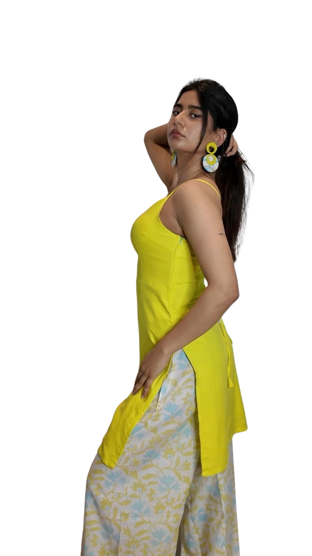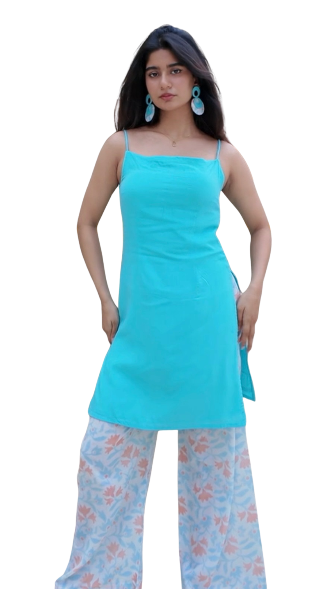 Elevate your style with JIVIDA our chic corset- back Kurti. Paired with easy, breathable lowers that blend comfort with clean lines. This set screams modern ethnic wear. The look is tied together with perfectly matched handmade fabric earrings, giving you that effortless style boost.