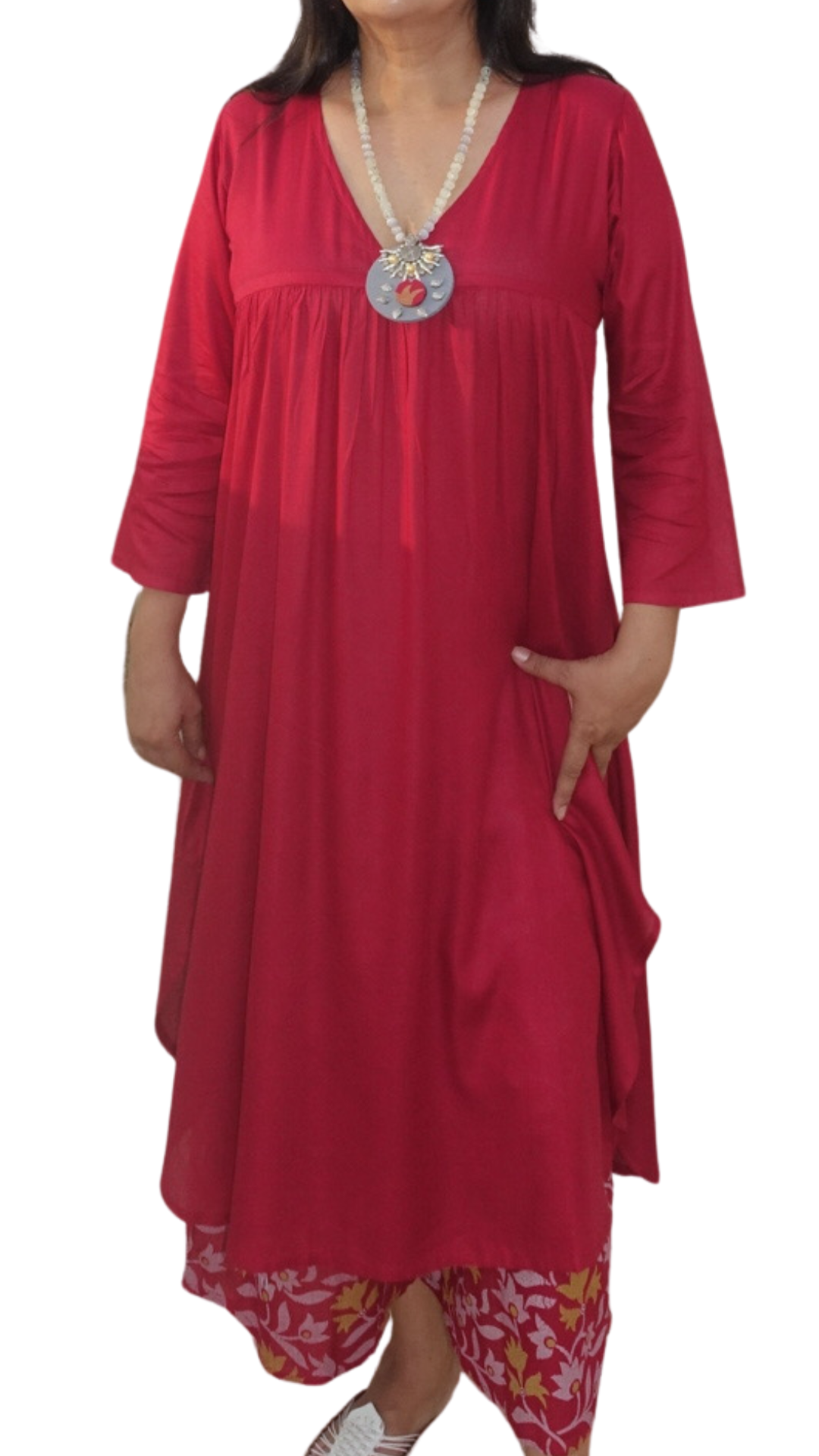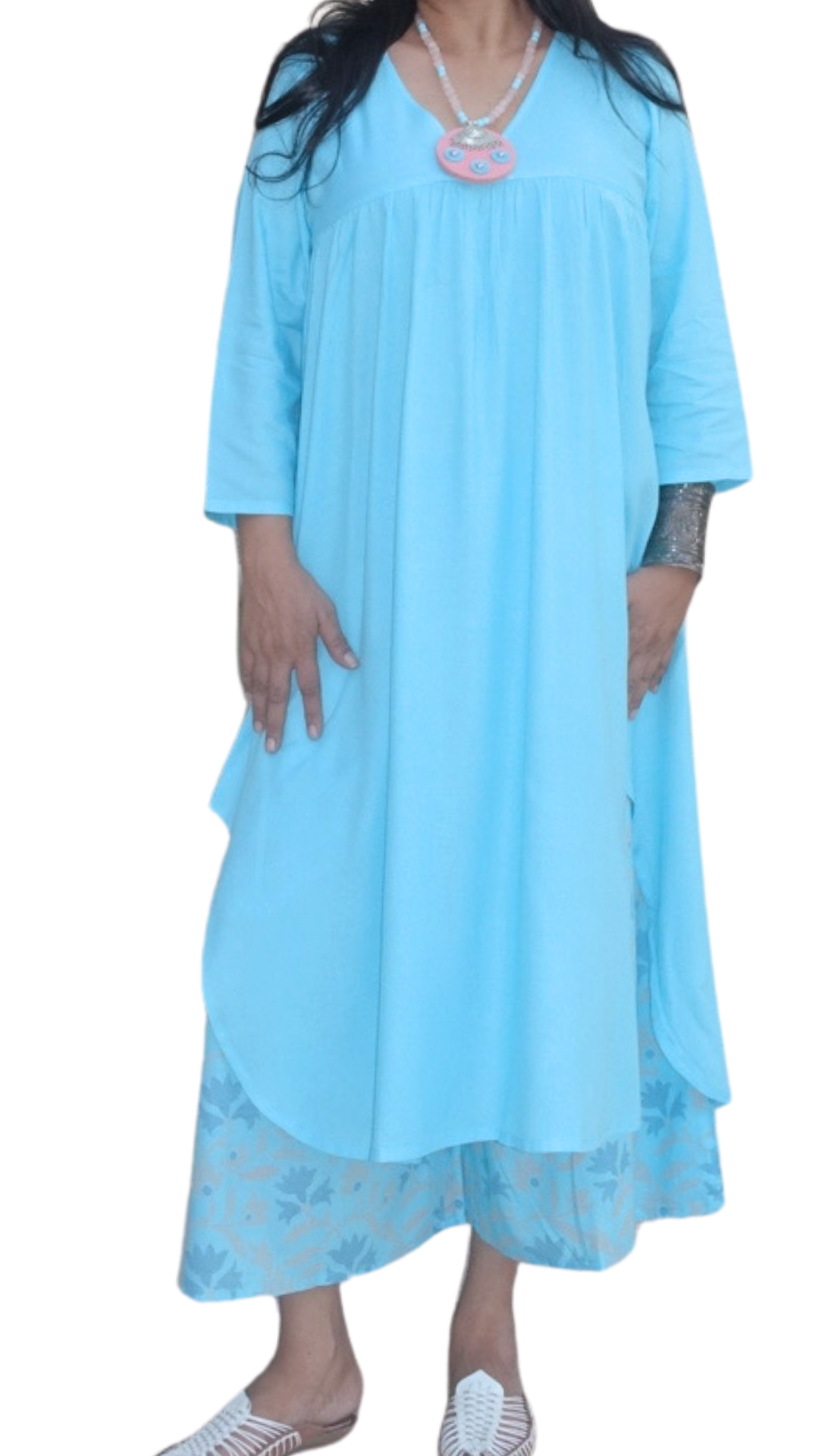 Includes : Kurti + palazzo pants+ neck piece + matching fabric earrings