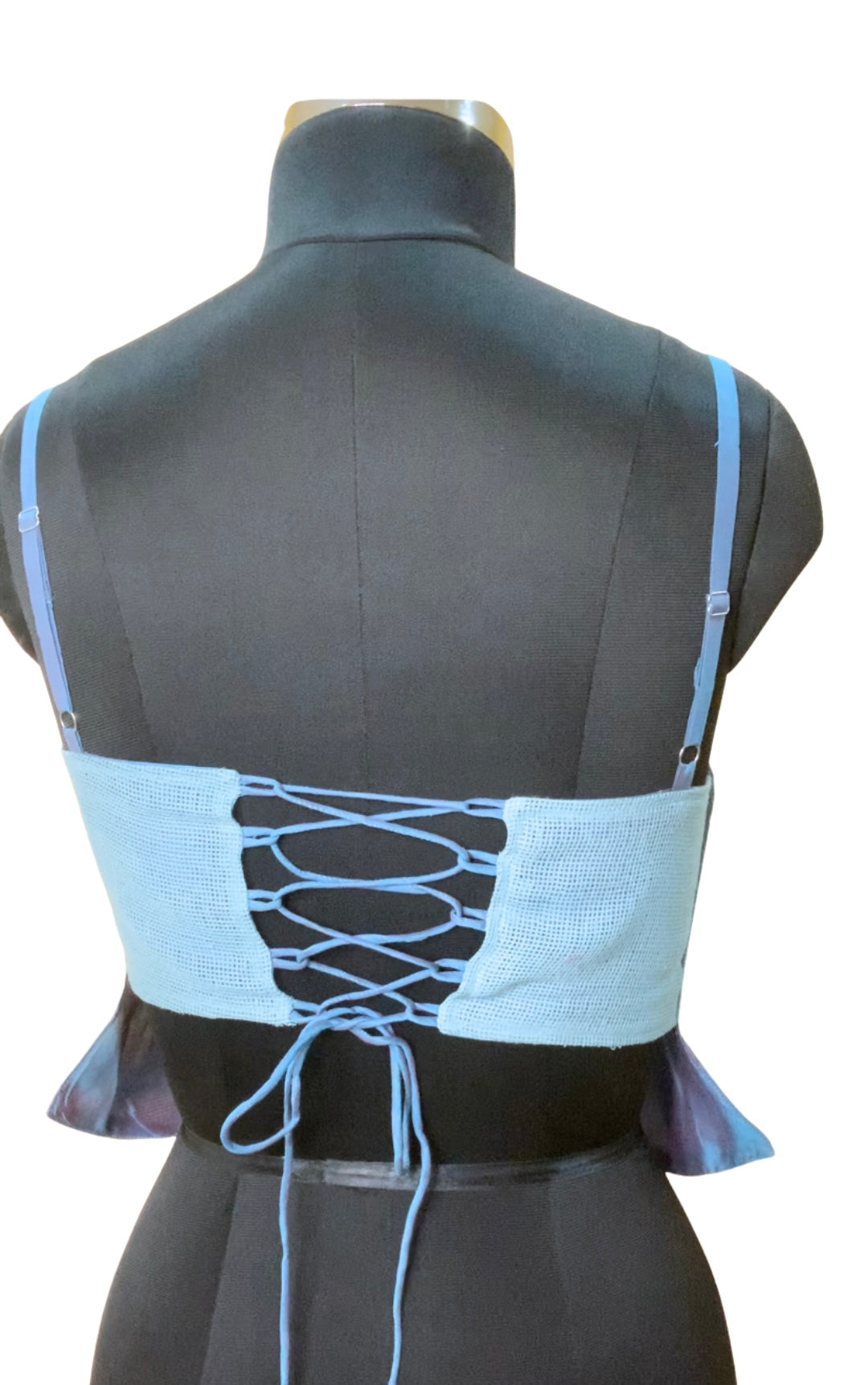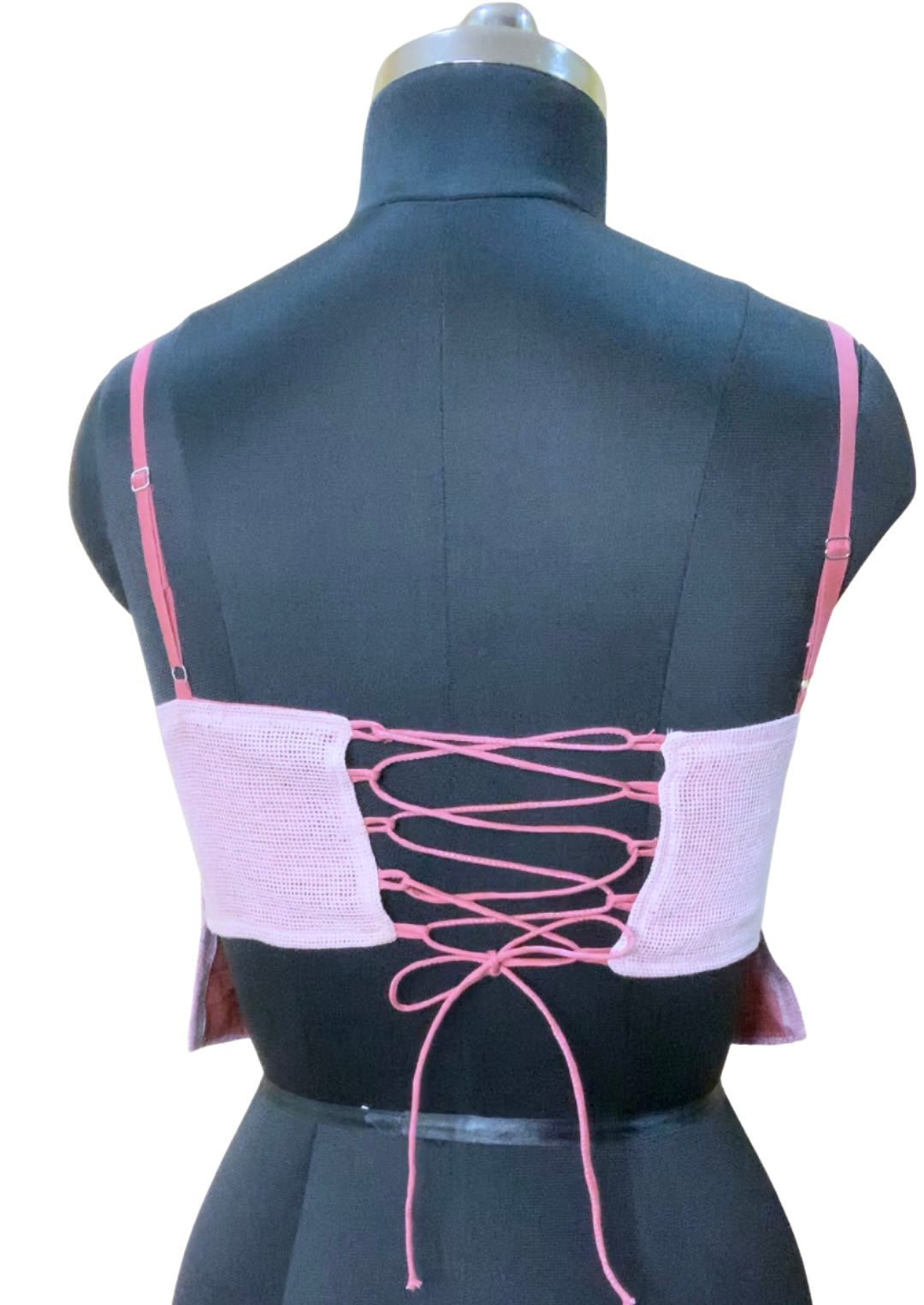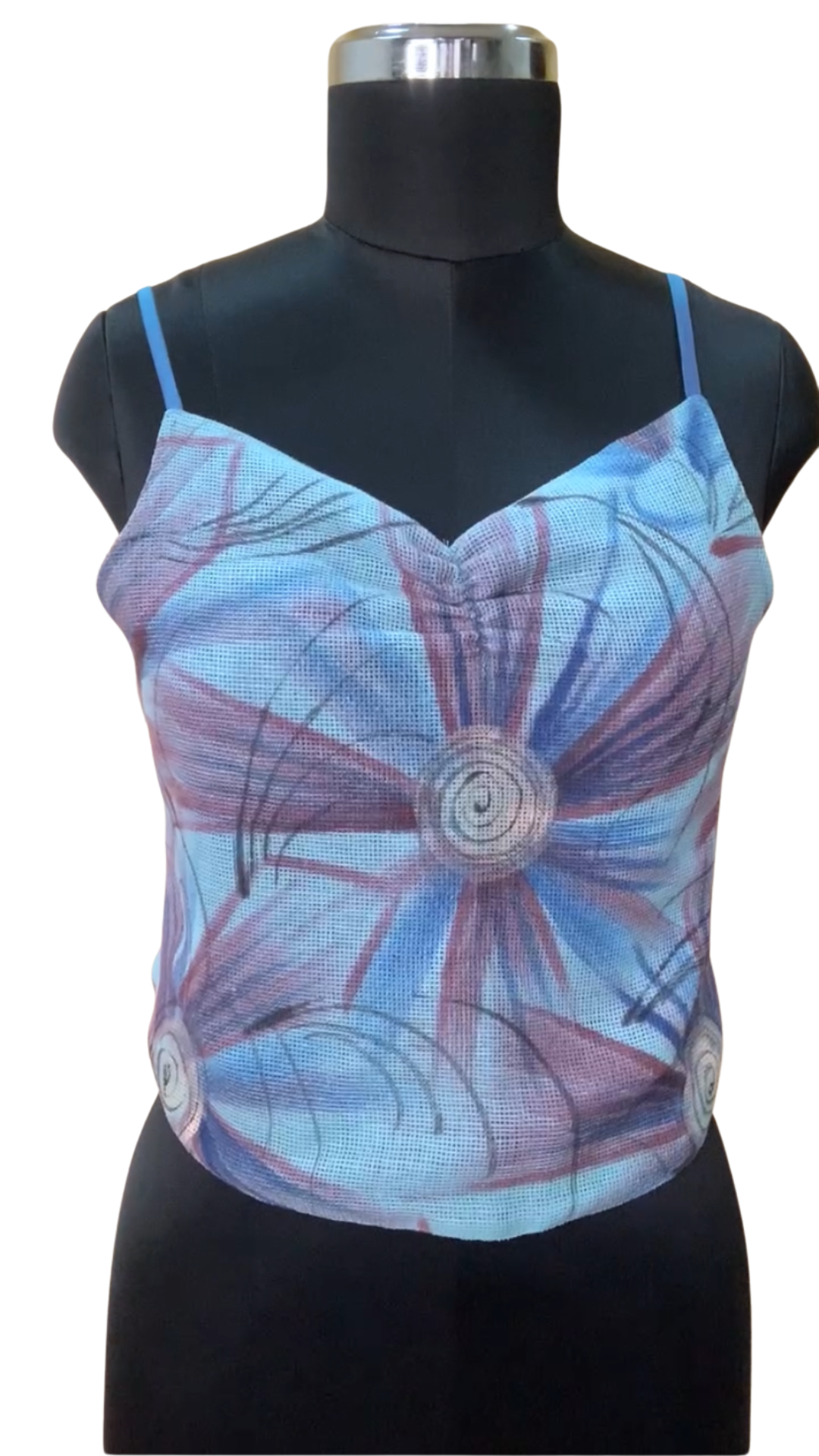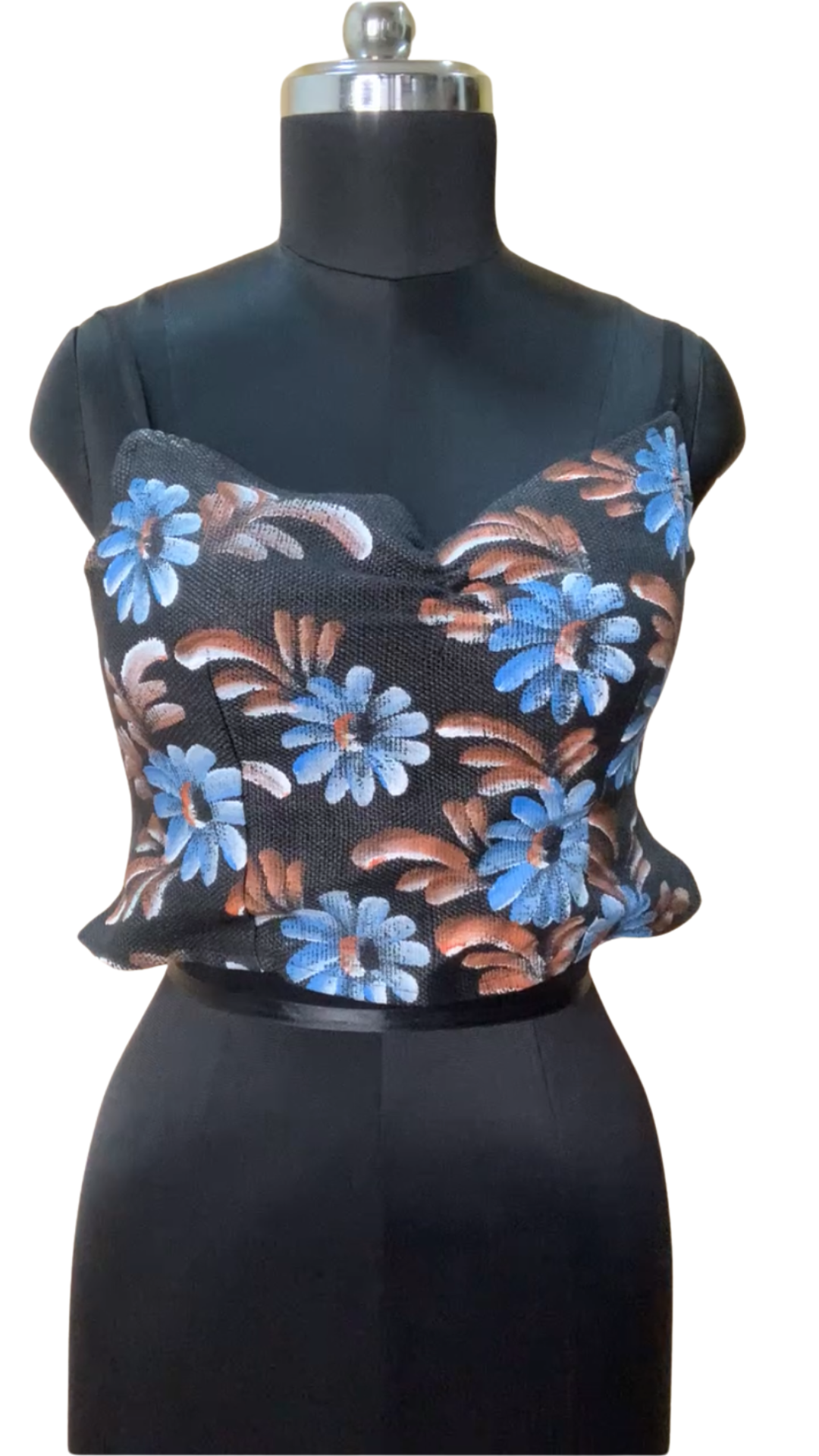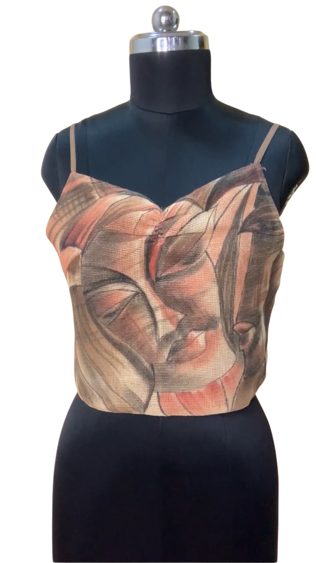 Elevate your style with BHOOMAYA our noodle strap corset-back Top – a handcrafted statement in every stitch. Made from hand-painted jute fabric and lined with soft silk for that luxe feel against the skin, this top blends traditional craft with contemporary design. The delicate noodle strap and structured corset back offer a flattering, adjustable fit that excludes elegance and strength. Each piece comes with matching fabric earrings, turning your look into a complete expression of wearable art.